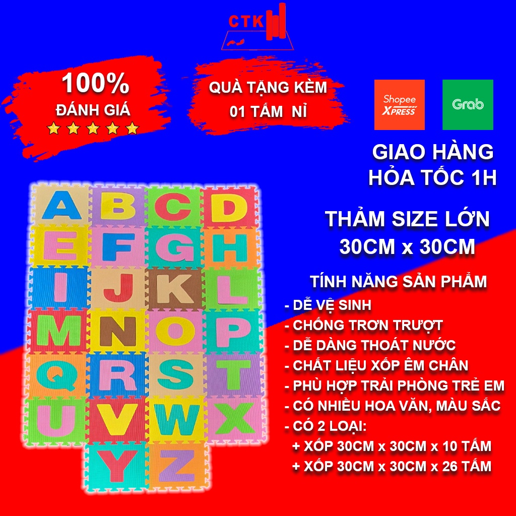 Thảm xốp lót sàn chống trơn, thảm xốp cho bé 30cm x 30cm✨✨✨ Cao Trường Kha đảm bảo: ✨✨✨