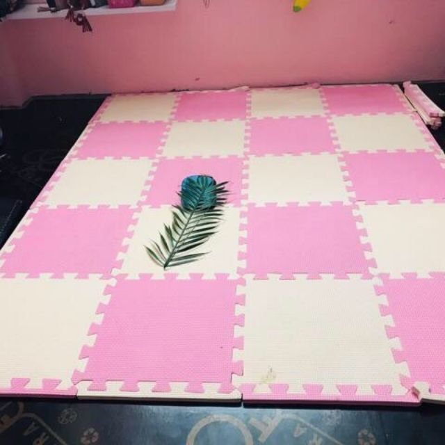 Giới thiệu Thảm xốp lót sàn màu hồng và kem 60×60×1 cm