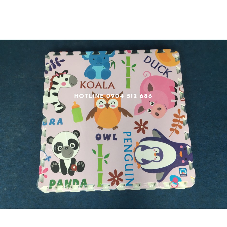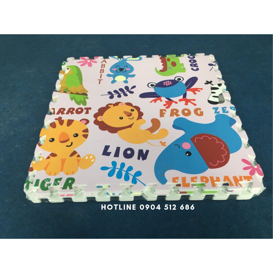 Thảm xốp tranh hoạt hình 60x60cm dày 9-10mm Âu Lạc Việt Nam Bộ vườn thú có chữ tiếng anh/ 4 tấm ghép