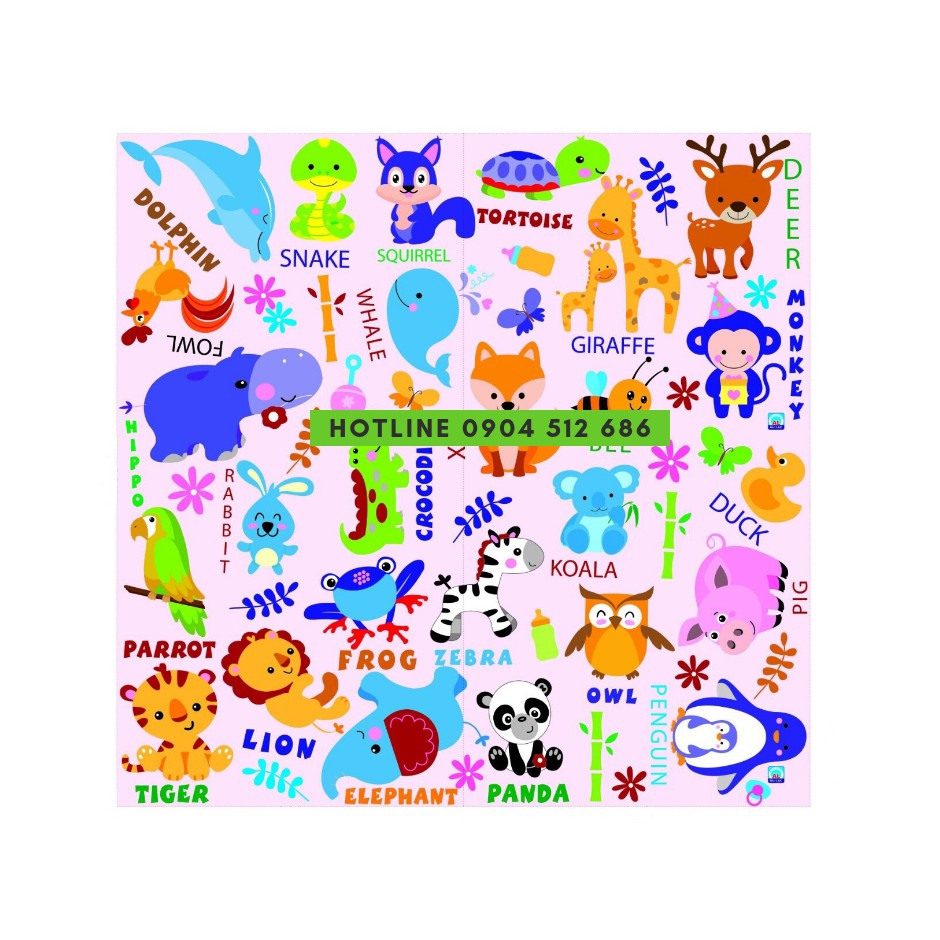 Nhà cửa & Đời sống > Trang trí nhà cửa > Thảm trải sàn || Thảm xốp tranh hoạt hình 60x60cm dày 9-10mm Âu Lạc Việt Nam Bộ vườn thú có chữ tiếng anh/ 4 tấm ghépCòn hàng