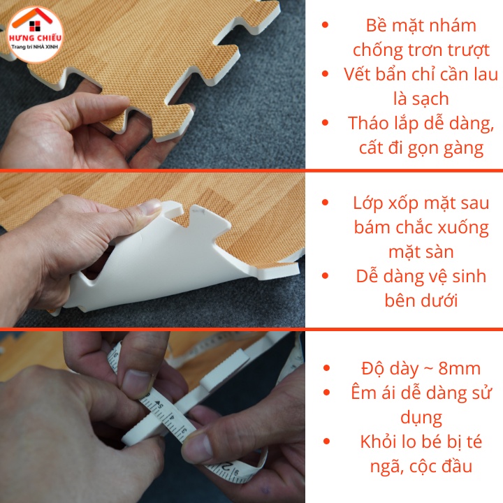 Giới thiệu Thảm xốp vân gỗ lót sàn cho bé ghép miếng chống trơn trượt Tường Lâm 60x60cm hàng đẹp ( 1 tấm )