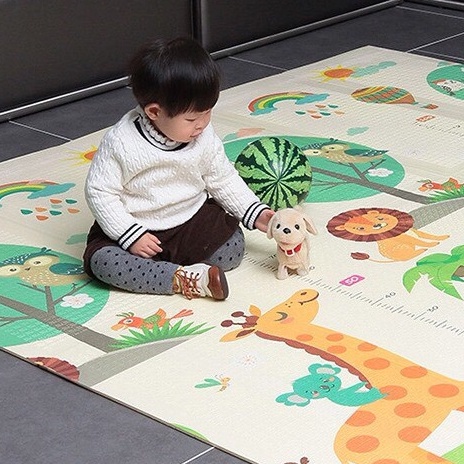 - Thảm in 2 mặt với họa tiết khác nhau nên bố mẹ có thể sử dụng cả 2 mặt tiện lợi. Công nghệ in cao cấp, bền màu, không chứa mực độc hại, nên an toàn cho bé khi tiếp xúc