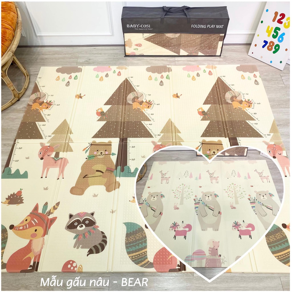 THẢM XỐP XPE PHỦ SILICON GẤP GỌN CHỐNG THẤM TUYỆT ĐỐI - ÊM MỀM VÔ CÙNG, 2 mặt đều được in hình cực xinh xắn đáng yêu.Kích thước mỗi thảm : 1.8m x 2m