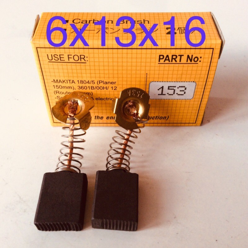 Nhà cửa & Đời sống > Dụng cụ & Thiết bị tiện ích > Dụng cụ > Cưa, máy cắt & máy mài || THAN CARBON- CHỔI THAN CARBON MÃ 153 MÁY CẦM TAY ĐỘ DẦY 6mm NGANG 13mmCòn hàng