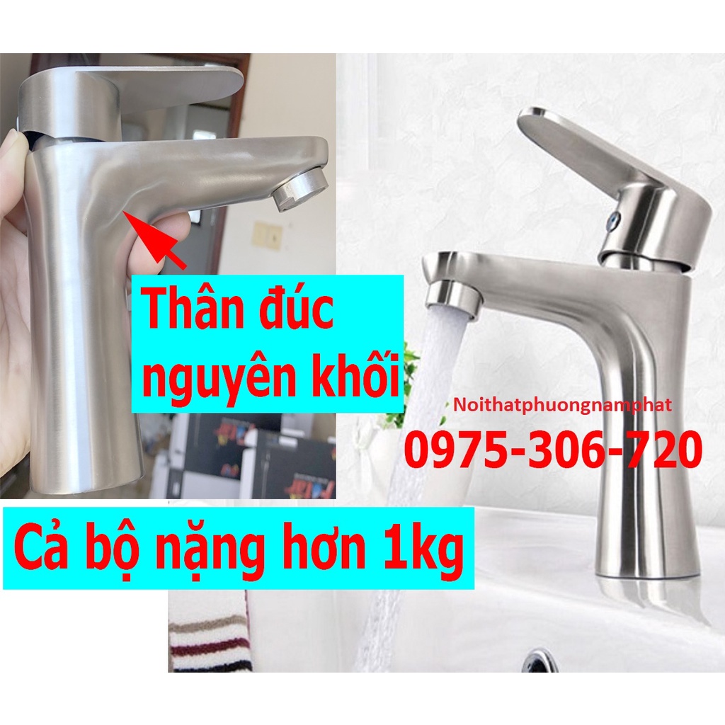 Nhà cửa & Đời sống > Dụng cụ & Thiết bị tiện ích > Chậu rửa & vòi nước || [THÂN ĐÚC NGUYÊN KHỐI INOX 304] Vòi Rửa Mặt Lavabo Nóng Lạnh INOX 304 N3002 Fotar và 2 dây LA EO 20CM, inox chống han rỉCòn hàng