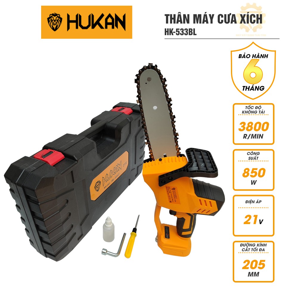Nhà cửa & Đời sống > Dụng cụ & Thiết bị tiện ích > Dụng cụ > Cưa, máy cắt & máy mài || [Mã LIFEMALL991 giảm 10% đơn 99K] Thân máy cưa xích chạy pin HUKAN HK-3056T động cơ không chổi than công suất 850WCòn hàng