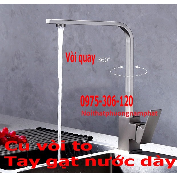 Nhà cửa & Đời sống > Dụng cụ & Thiết bị tiện ích > Chậu rửa & vòi nước || (THÂN TO DÀY)Vòi Rửa Chén Bát Nóng Lạnh 100% INOX 304 chống han gỉ N4003 FOTAR Quay được 2 hộc chậu vòi Chén Vuông dẹtCòn hàng