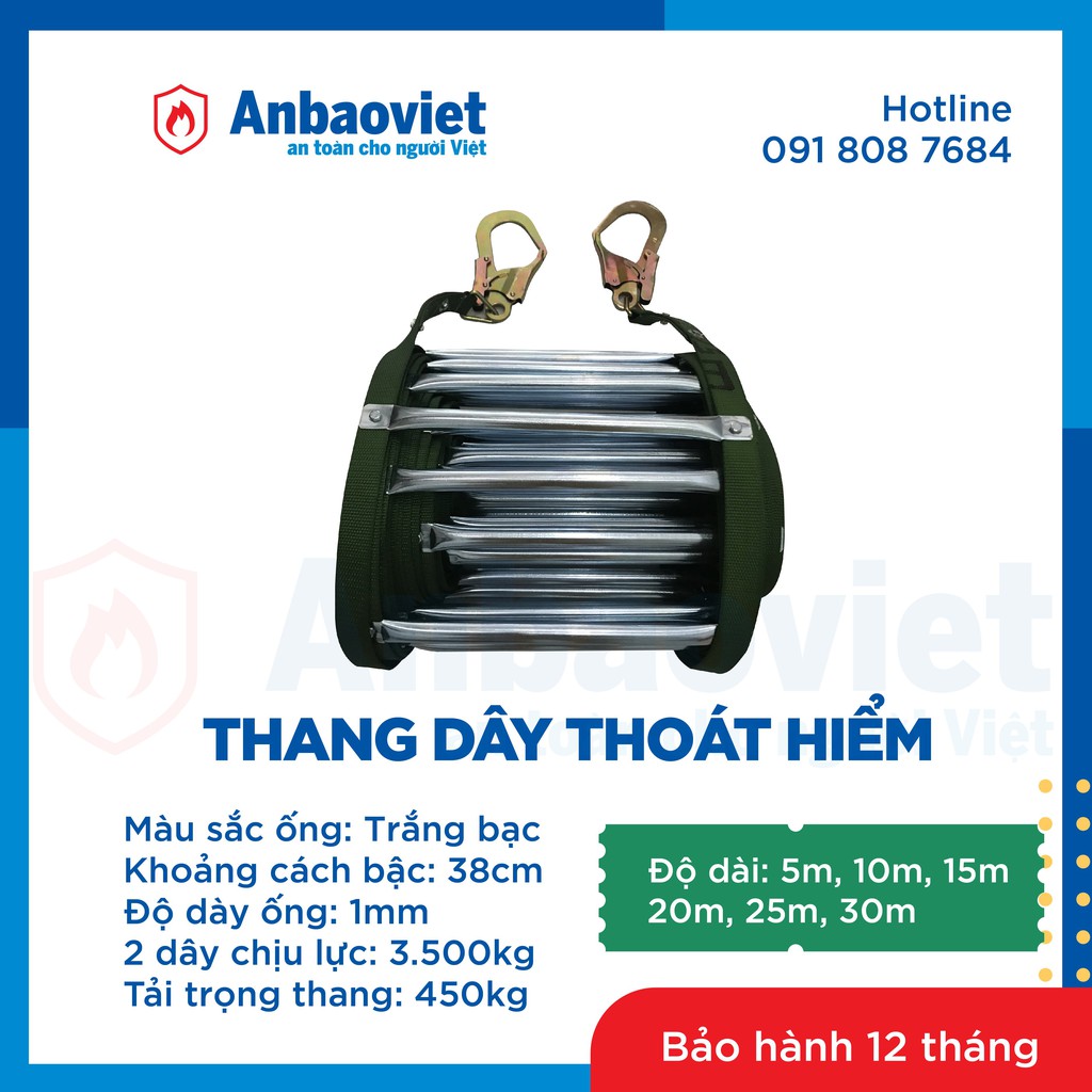 Thang dây thoát hiểm dài 5m đã bao gồm cặp móc. TDTH05