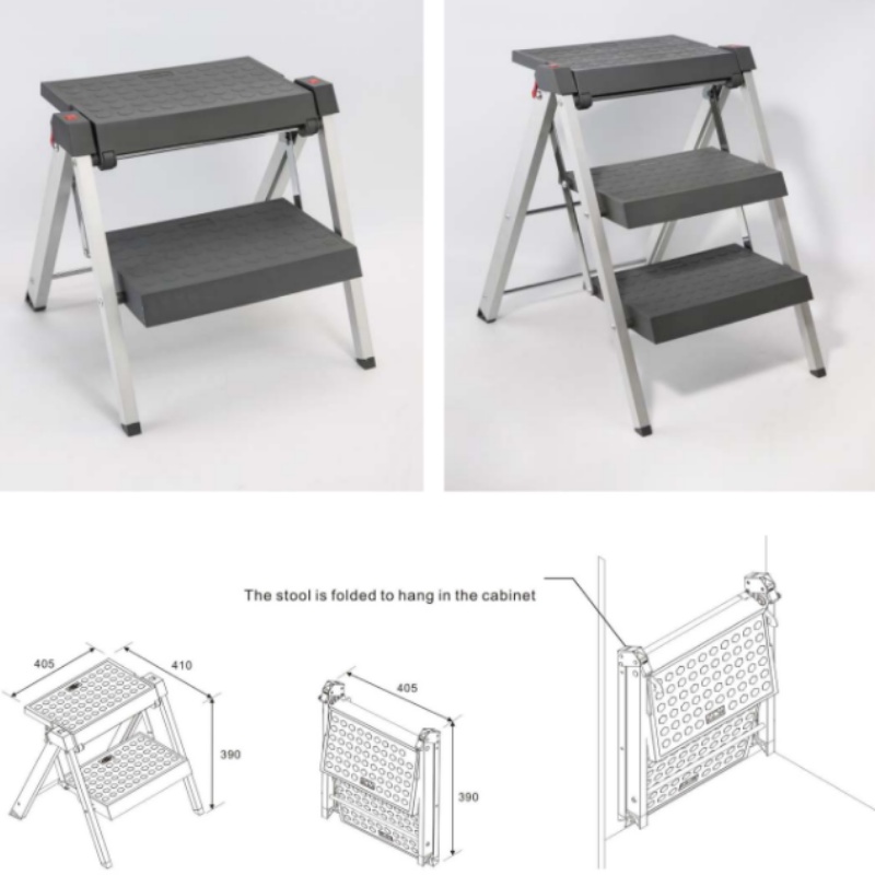 – Kích thước ban đầu của thang gấp là rất ngắn nhờ được thiết kế là 2 và 3 khúc thang kết nối với nhau bằng hệ thống chốt khóa tự động hiện đại.