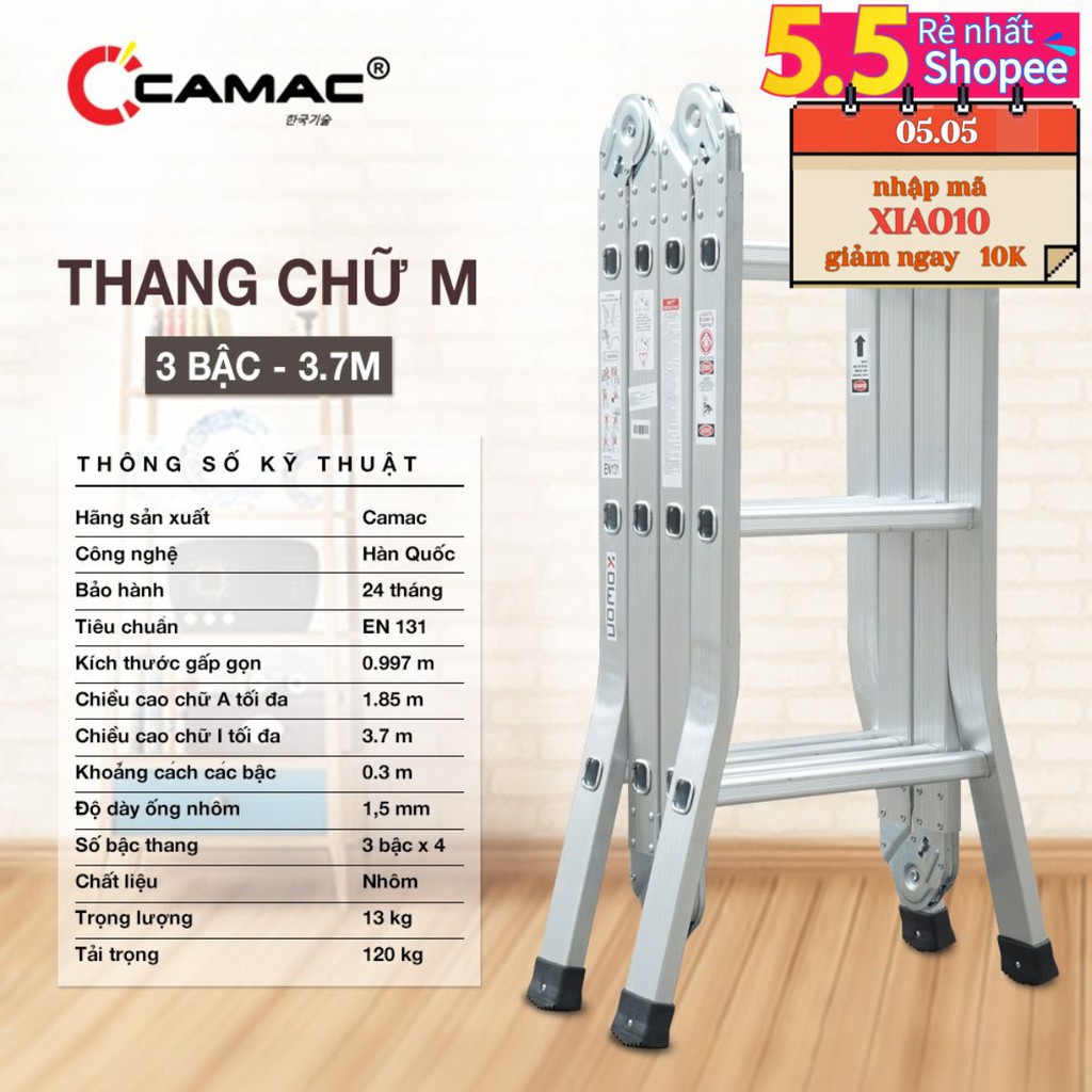 Thang Nhôm Chữ M 3.7M ( Thang Nhôm chữ M BẢO HÀNH 18 THÁNG)