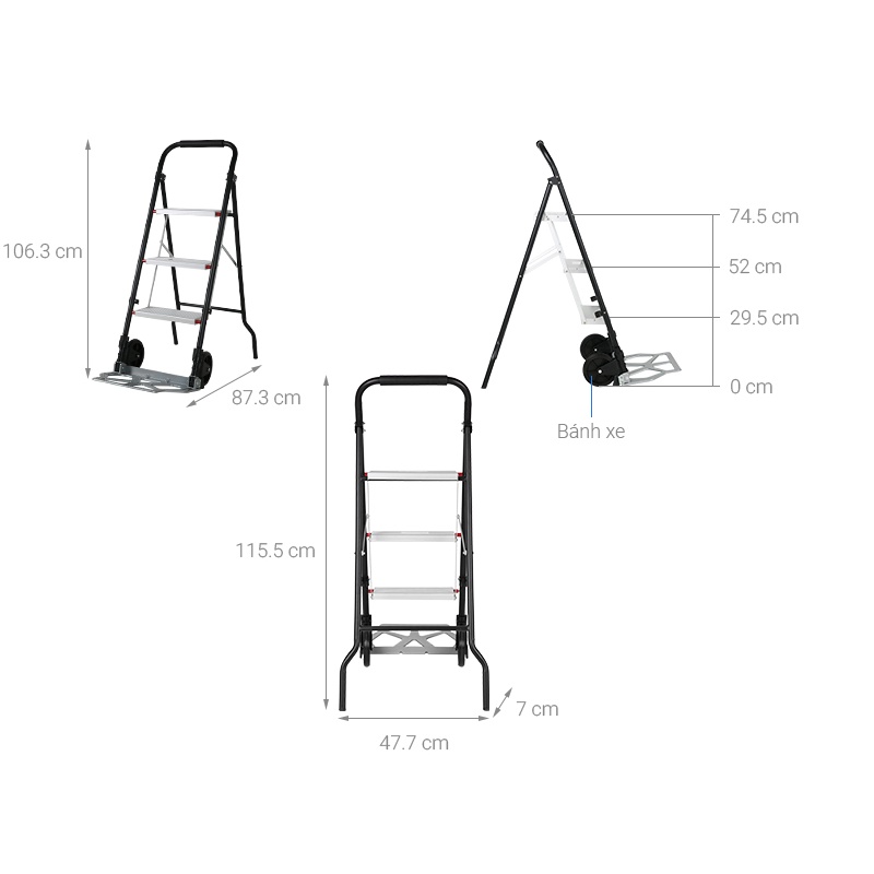 Thang ghế 3 bậc kết hợp xe đẩy hàng Kachi MK183 Bảo Hành Chính Hãng 18 Tháng