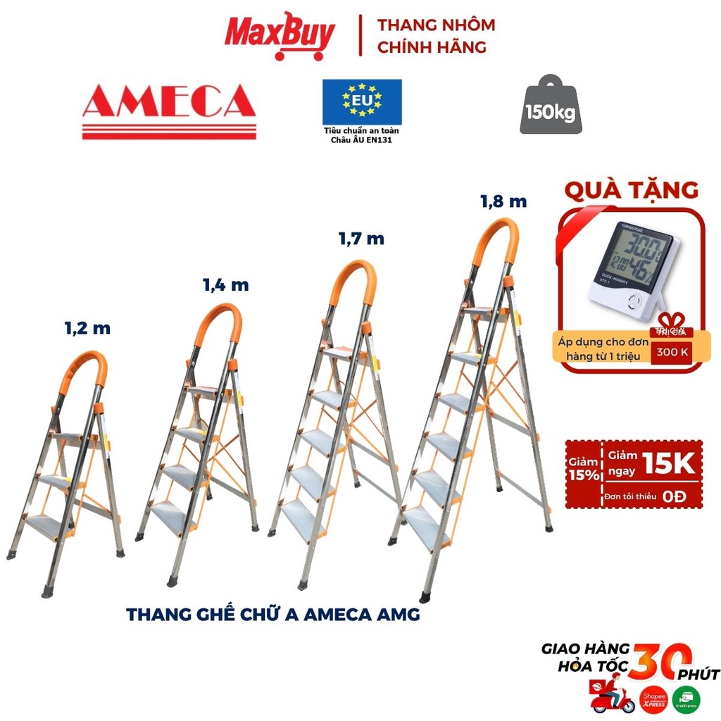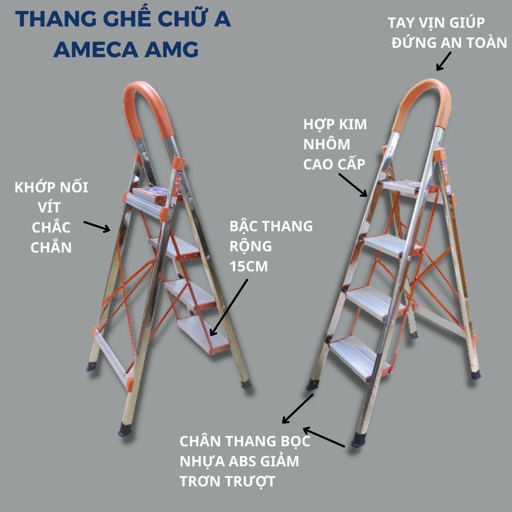 Nhà cửa & Đời sống > Dụng cụ & Thiết bị tiện ích > Thang || Thang ghế chữ a AMECA AMG inox tay vịn gấp gọn đa năng - bảo hành chính hãng 18 thángCòn hàng
