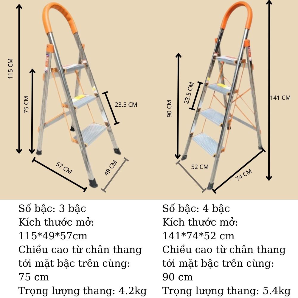 - AMECA thang 4 BẬC : tổng chiều dài 1.4m, bậc cao nhất 1m, trọng lượng 5 kg