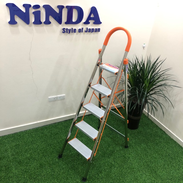 Giới thiệu Thang ghế inox gia đình NiNDA NDi05, 5 bậc, cao 1m2, bậc nhôm bản to, sửa chữa dọn dẹp nhà cửa chung cư