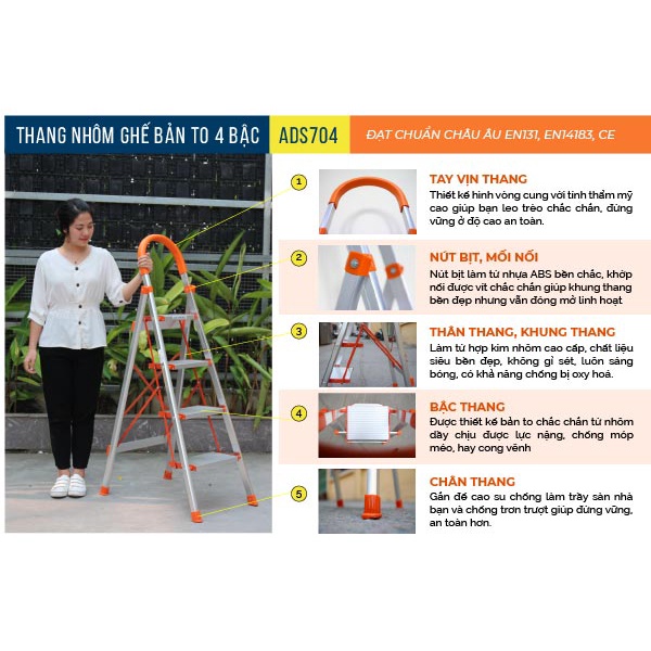 2. THANG NHÔM GHẾ BẢN TO 4 BẬC ADVINDEQ ADS-704