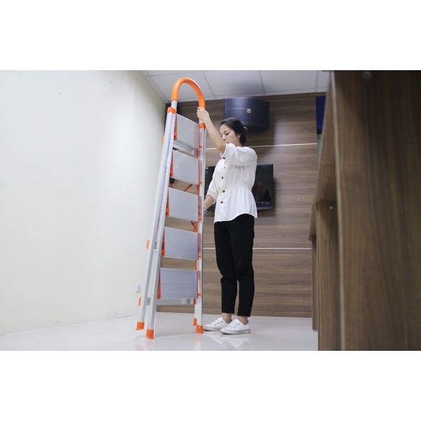 - Thang ghế nhôm tay vịn rất thích hợp sử dụng trong gia đình, siêu thị, các shop thời trang có độ cao vừa phải như cho các công việc sửa chữa điện, vệ sinh nhà cửa trên cao, lấy đồ đạc trên cao, vệ sinh tủ, bàn thờ, thắp nhang rất tiện lợi mà lại an toàn.