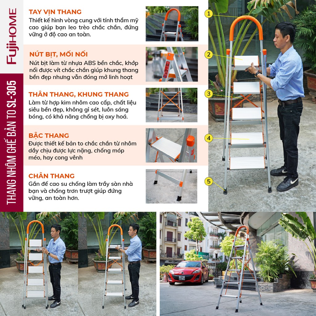 ✅ THANG NHÔM GHẾ BẢN TO 5 BẬC FUJIHOME SL-305