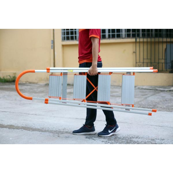 - Thiết kế linh hoạt, tiện lợi, dễ di động hơn so với các dòng thang khác, đặc biệt thang có thể dựng trên nhiều địa hình khác nhau mà không cần điểm tựa, thang vẫn đứng vững vàng, không bị rung lắc.
