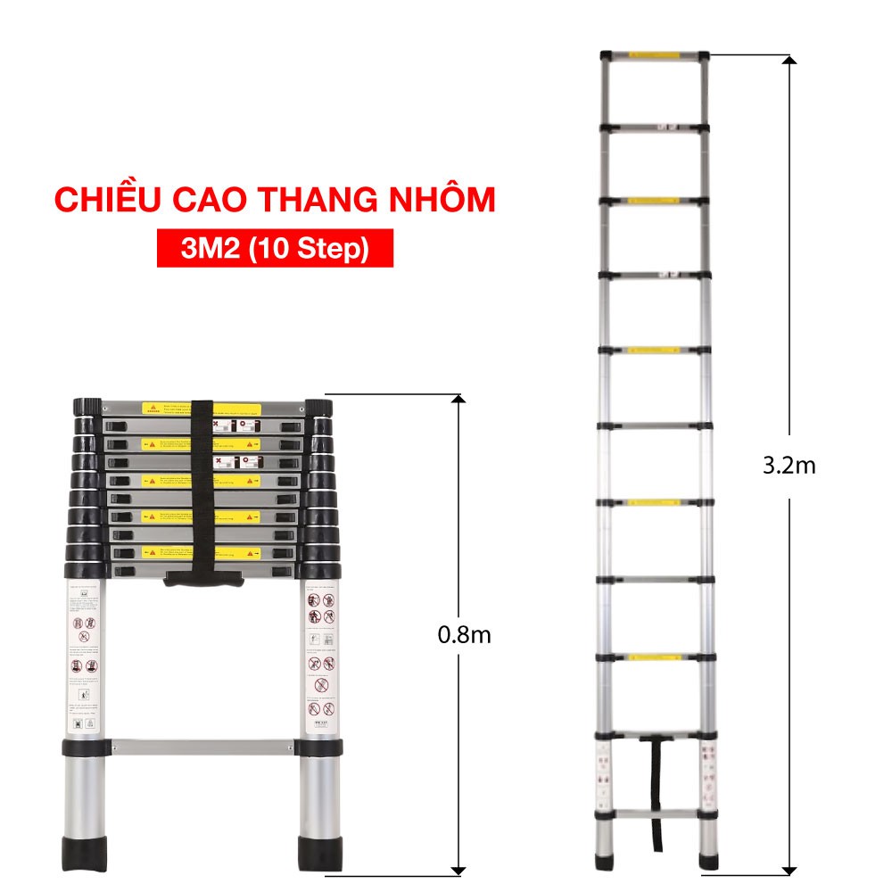 Thang nhôm rút 3.2 Busan Hàn Quốc Full inox304 chống han gỉ En131 Co6030*Thang Nhôm Busan hàn quốc