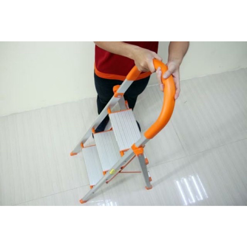 Thang nhôm ghế gia đình, bản bậc to 3 bậc ADVINDEQ ADS-703 - có tay vịn, gấp gọnLà dòng thang được các bà nội trợ rất thích sử dụng vì tính tiện lợi, chắc chắn nhưng lại rất nhẹ, dễ mang vác, thao tác, có thể gấp gọn khi không sử dụng và đặt vào 1 góc nhà, không mất nhiều diện tích. Màu nhôm bạc kết hợp màu cam sẽ làm điểm nhấn khiến căn phòng trở nên sang trọng và ấn tượng hơn. Thang có tay vịn giúp bạn leo trèo chắc chắn.