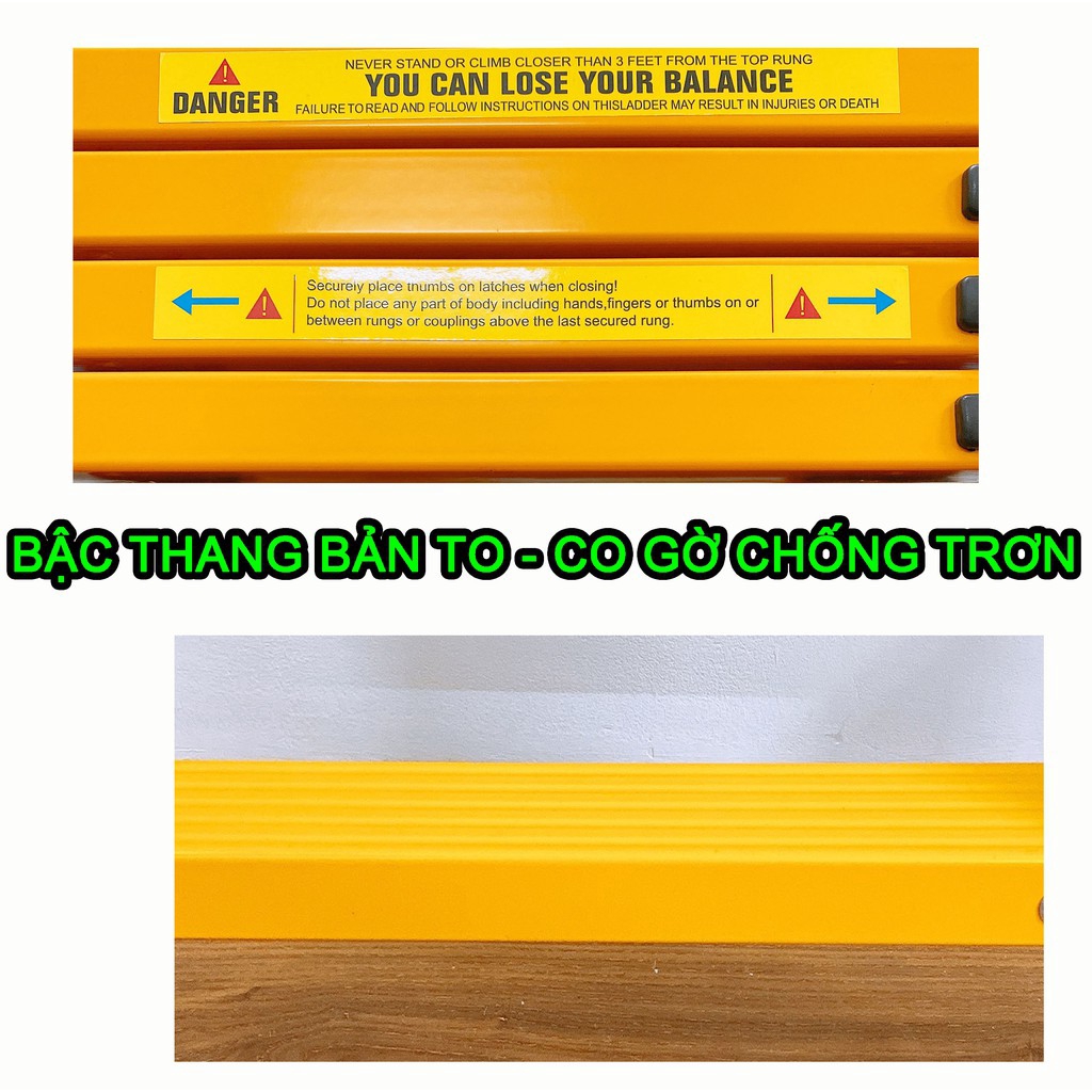 Các khóa thang và đai làm bằng nhựa chịu lực nên rất chắc chắn. Bậc thang có các vân để tăng độ ma sát khi đứng.
