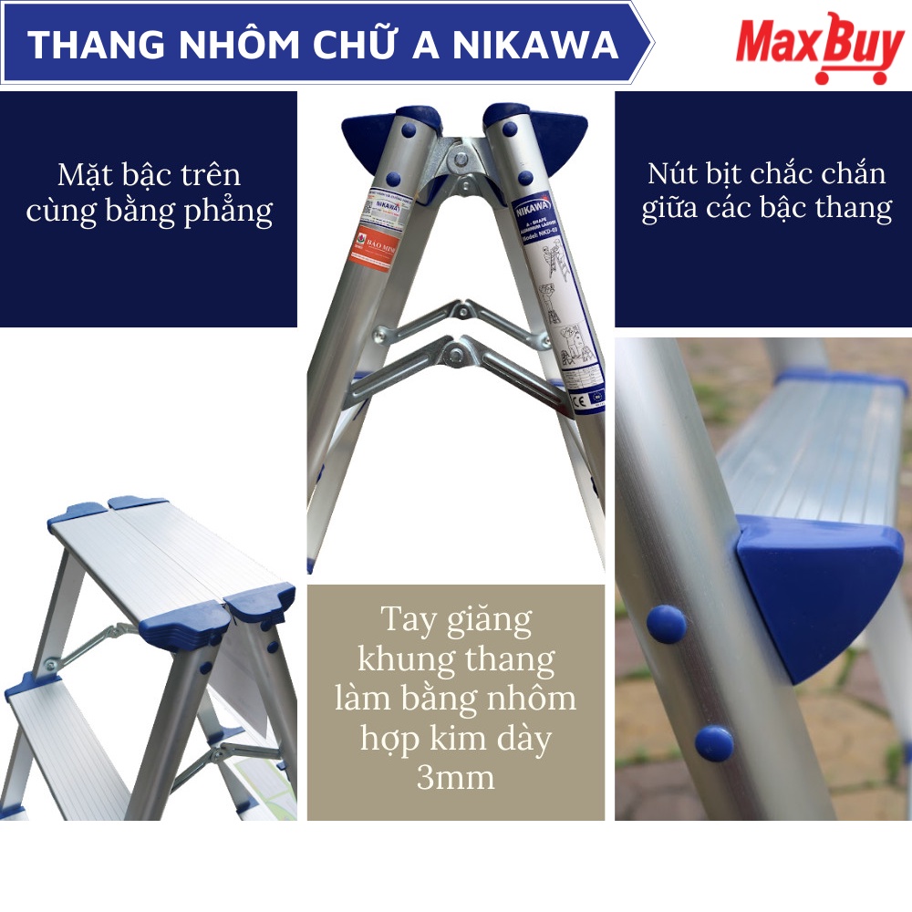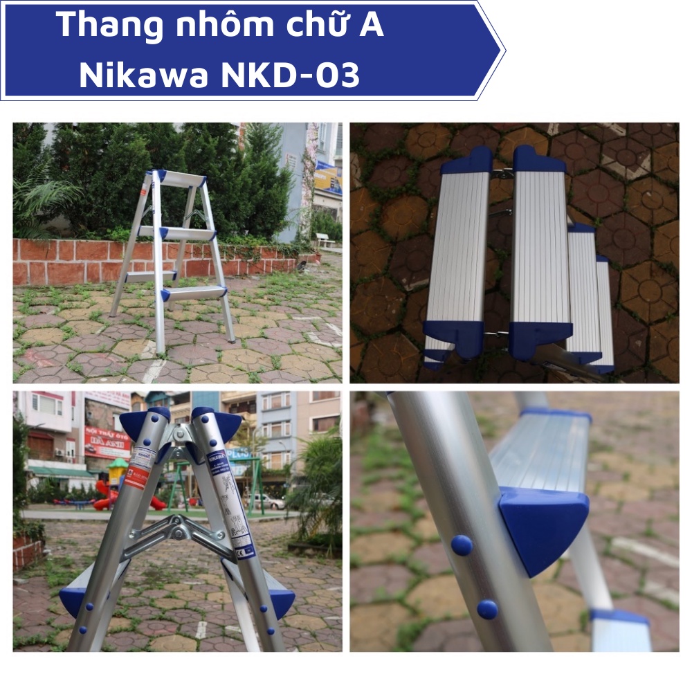 Giới thiệu Thang nhôm chữ A gấp gọn NIKAWA NKD-03 - 3 bậc, 75cm, nhập khẩu Nhật Bản, bảo hành 18 tháng giao hỏa tốc HN