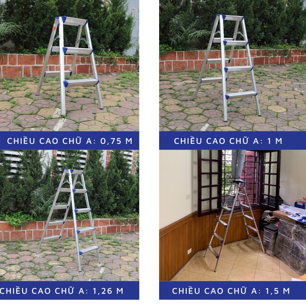 – Chiều cao chữ A: 0,75m