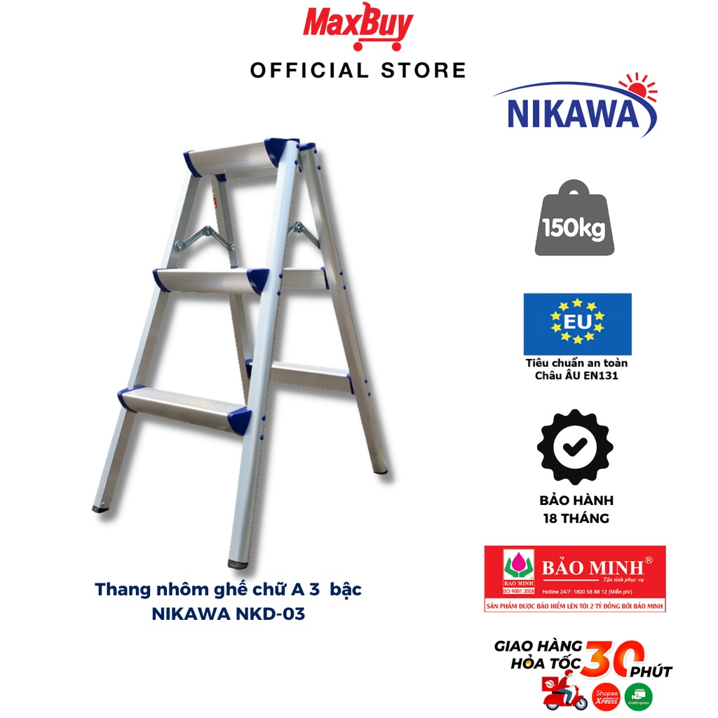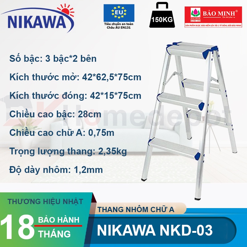 Thang nhôm chữ A gấp gọn NIKAWA NKD-03 - 3 bậc, 75cm, nhập khẩu Nhật Bản, bảo hành 18 tháng giao hỏa tốc HN