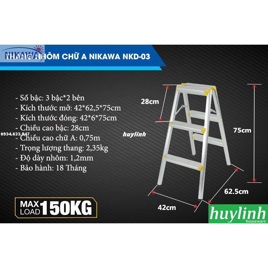 Thang nhôm chữ A Nikawa NKD-03 - 3 bậc