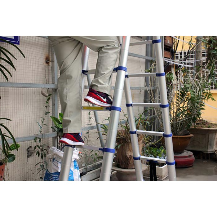 Ưu điểm : Nhôm cao cấp siêu bền, tải trọng cao, dễ di chuyển và có khả năng xếp gọn, rút gọn, xép thành hình A, I