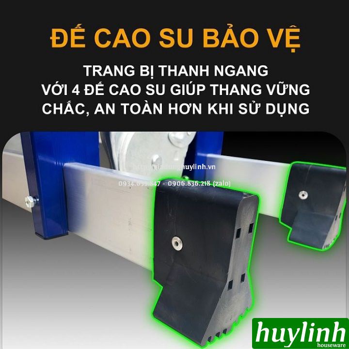 Thang được làm bằng nhôm hệ 6063 phun sơn tĩnh điện màu xanh đậm cao cấp, giúp thang được sử dụng và bảo quản1 cách bên bỉ qua thời gian.