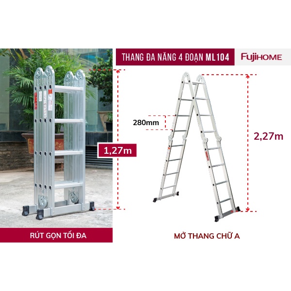 1. ✅ THANG NHÔM GẤP ĐA NĂNG 4 ĐOẠN FUJIHOME ML104N (còn hàng)