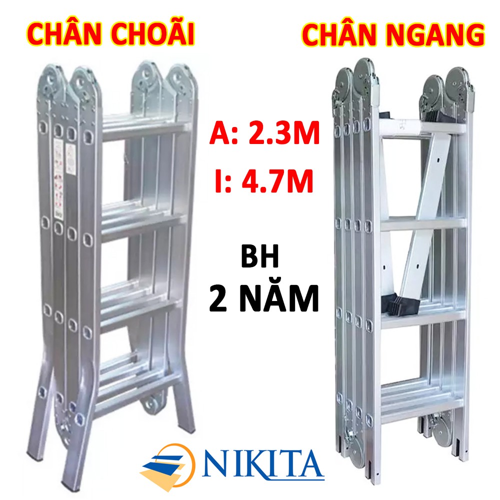Nhà cửa & Đời sống > Dụng cụ & Thiết bị tiện ích > Thang || Thang nhôm gấp 4 đoạn (chữ A 2.3m, chữ I 4.7m) Nikita TGA47&GA47Còn hàng