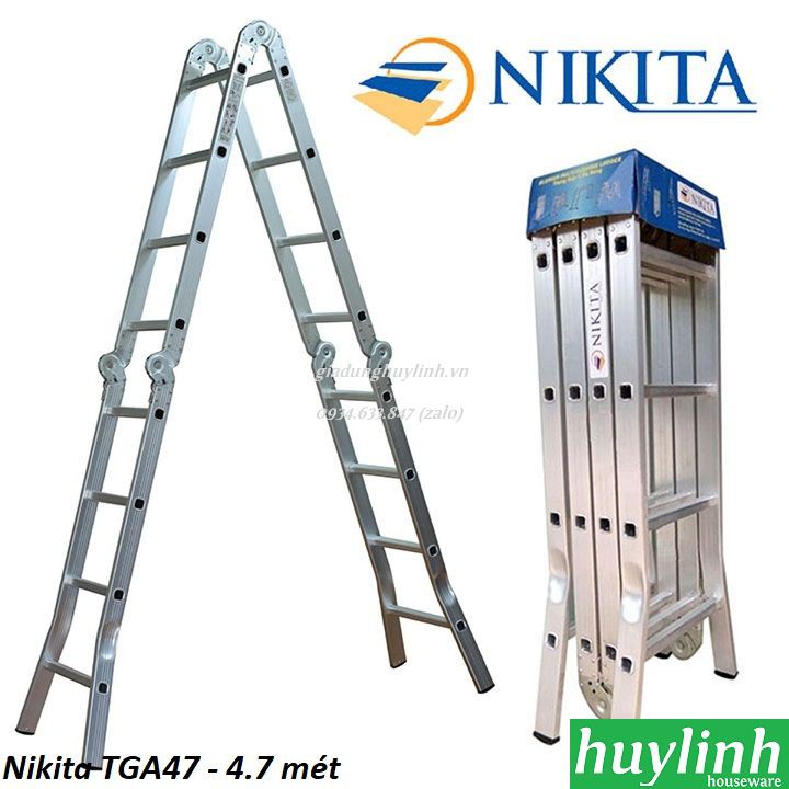 Giới thiệu Thang nhôm gấp 4 đoạn Nikita TGA47 - 4.7 mét