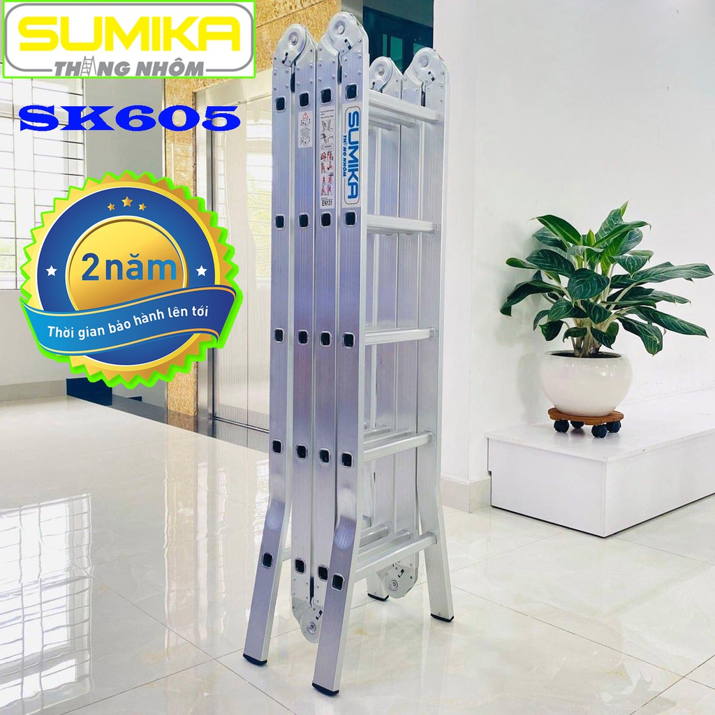 Thang nhôm gấp 4 đoạn Sumika SK605Thời gian bảo hành: 2 Năm.