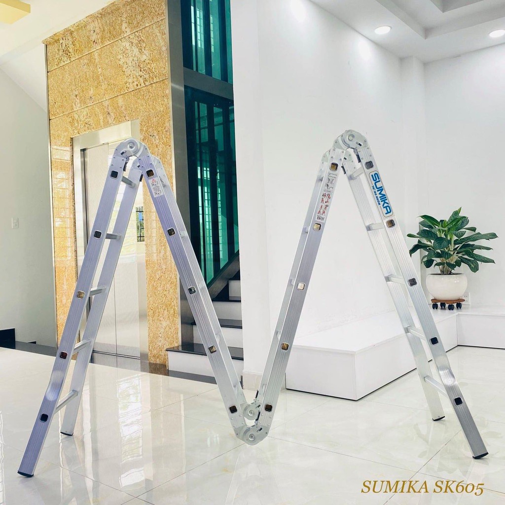 Nhà cửa & Đời sống > Dụng cụ & Thiết bị tiện ích > Thang || Thang nhôm gấp 4 đoạn Sumika SK605, chữ a 2,9m duỗi thẳng 5,8mCòn hàng