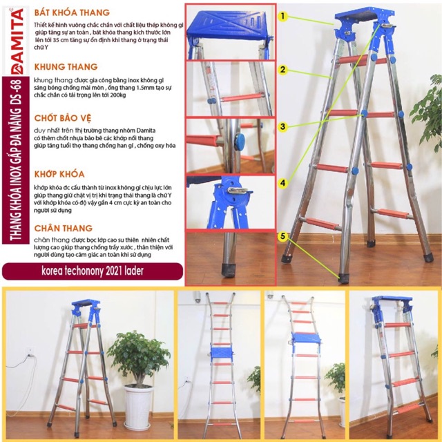 – Thang có thể gấp lại sau khi sử dụng, dễ dàng vận chuyển hoặc cất giữ mà không chiếm nhiều diện tích