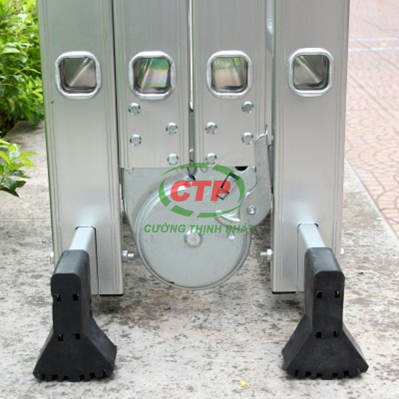 - Chân đế bọc cao su lớn, có độ bền rất cao, chất liệu không quá cứng cũng không quá mềm, chịu nhiệt tốt ở mọi điều kiện thời tiết, bạn hoàn toàn yên tâm vì chất liệu đặc biệt ở chân đế thang vì đã được khắc phục các tình trạng chống mòn, chống hư hỏng và các chân đế kém chất lượng.