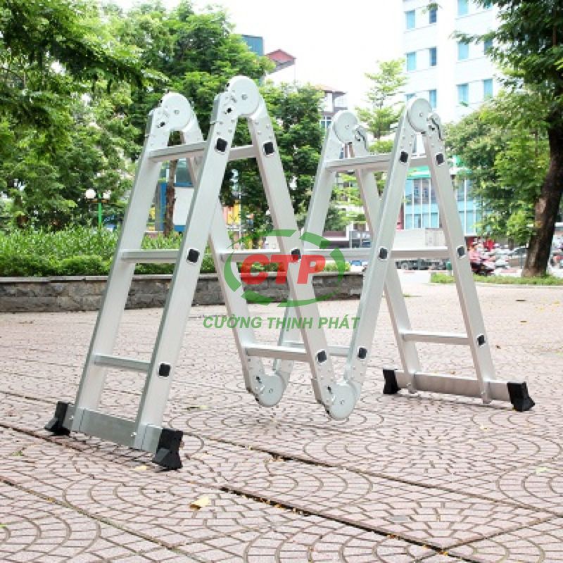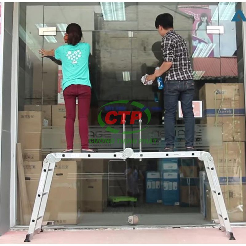 - Thang nhôm gấp đa năng 4 đoạn Advindeq ADM103 có thể tạo hình chữ M với một tấm chắn ngang đặt phía bên trên, bạn có thể để đứng lên một cách vững chãi và để dụng cụ khi đang làm việc.