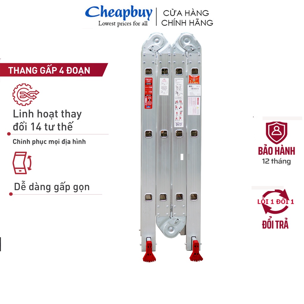 Thang nhôm gấp đa năng 4 đoạn cao 3,7m nhập khẩu FUJIHOME ML103 , thang chữ M xếp gọn 4 khúc, bảo hành 1 năm