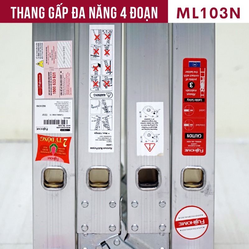 Nhà cửa & Đời sống > Dụng cụ & Thiết bị tiện ích > Thang || Thang nhôm gấp đa năng 4 đoạn cao 3,7m nhập khẩu FUJIHOME ML103 , thang chữ M xếp gọn 4 khúc, bảo hành 1 nămCòn hàng