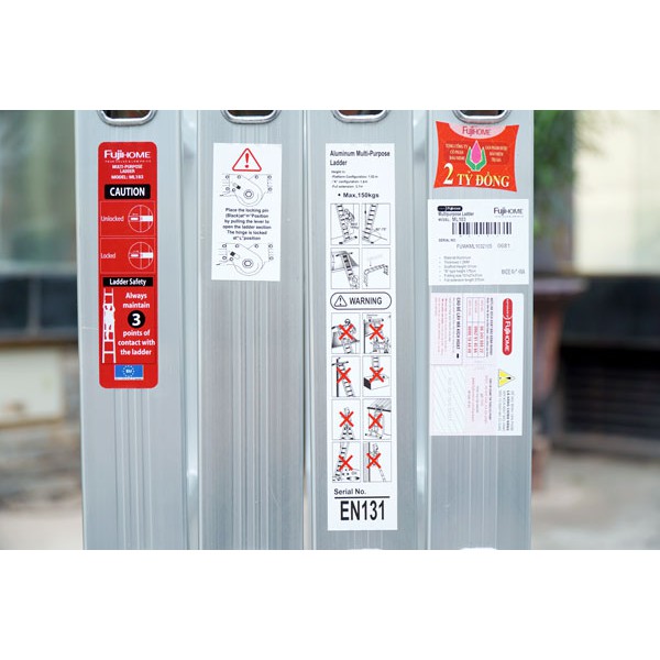 Nhà cửa & Đời sống > Dụng cụ & Thiết bị tiện ích > Thang || Thang nhôm gấp đa năng 4 đoạn, 12 tư thế sử dụng FUJIHOME ML103 ( Chiều cao chữ I 3.7m, chữ A 1.78m) Bảo hành 1 nămCòn hàng