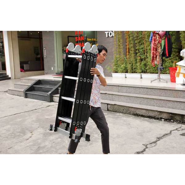 – Tuy là thang đa năng nhiều tư thế nhưng được chế tạo bởi chất liệu nhôm siêu nhẹ, trọng lượng 13kg, tiện lợi, dễ vận hành.