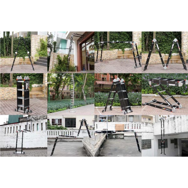– Thang gấp đa năng với nhiều tư thế khác nhau như: A, L, U, M, I... hay còn gọi là thang gấp khúc đa năng.