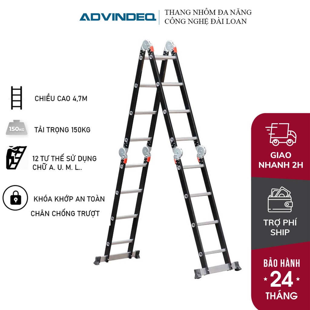 ✅ 1. Thang nhôm gấp đa năng 4 đoạn Advindeq ADM104 - CAO 4.7M