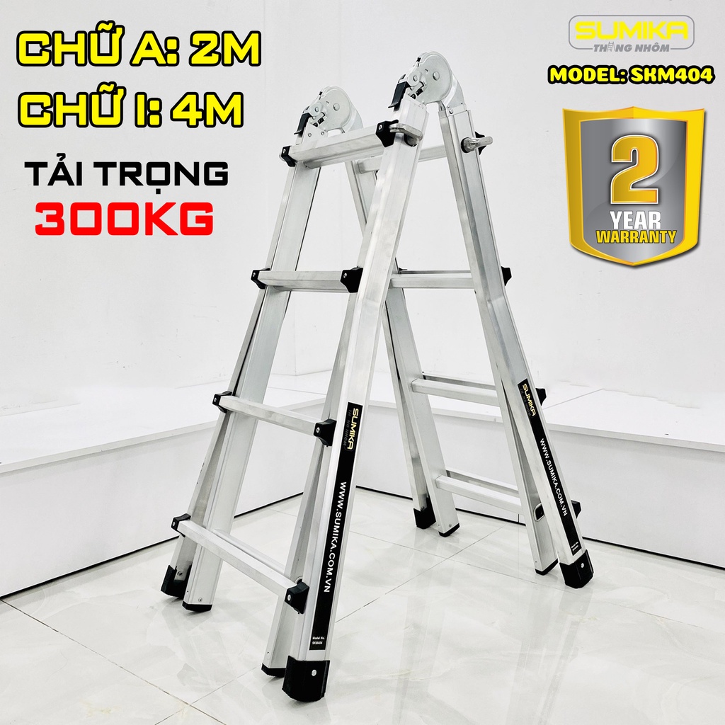 Nhà cửa & Đời sống > Dụng cụ & Thiết bị tiện ích > Thang || Thang nhôm gấp trượt chữ A mở rộng SUMIKA SKM404 (chữ A: 2M - chữ I: 4M) tải trọng 300kg,bảo hành 2 năm, thang điện lạnhCòn hàng