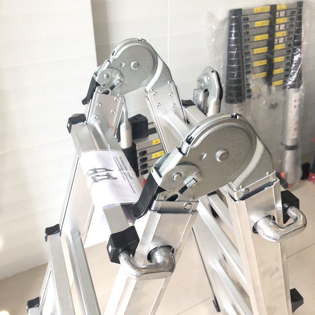Thang có thiết kế linh hoạt, chuyển đổi dễ dàng thành thang chữ A, thang chữ I kéo dài bằng nút khoá bản lề tự động ở 2 bên thang. Thang cũng có thể rút gọn lại sau khi sử dụng, giúp tiết kiệm tối đa diện tích cất giữ.