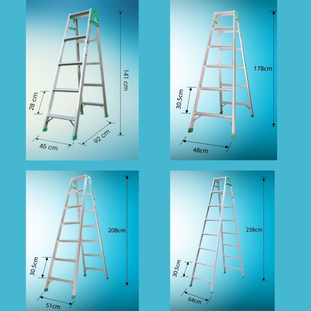 • Độ rộng bản bậc thang xếp vừa phải để bạn có thể đứng trên bằng hai chân. Chiều cao giữa các bậc là 30.5 cm, độ rộng đỉnh thang 30cm