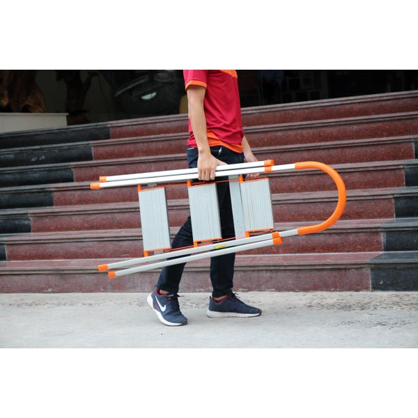 - Thang làm bằng hợp kim nhôm 3.3kg nhẹ hơn hẳn các dòng thang khác trên thị trường, nhẹ nhàng, không chiếm nhiều diện tích khi cất giữ, có thể gấp gọn khi không sử dụng.