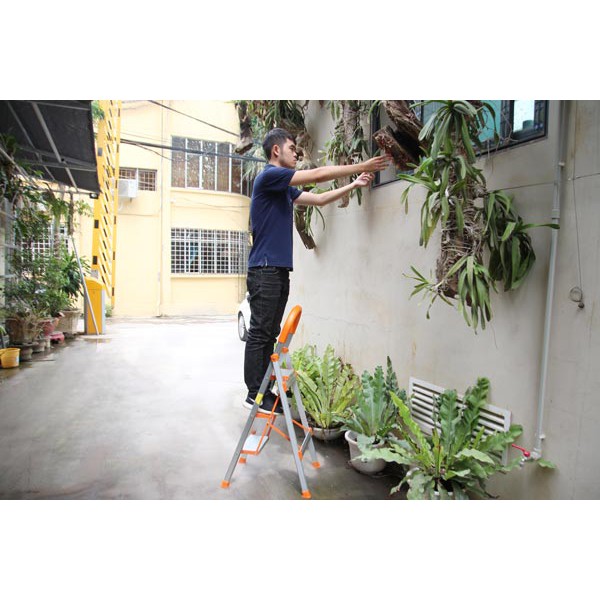 Thang nhôm ghế bản to 3 bậc ADVINDEQ ADS-703Là dòng thang ghế gia đình được các bà nội trợ rất thích sử dụng vì tính tiện lợi, chắc chắn nhưng lại rất nhẹ, dễ mang vác, thao tác, có thể gấp gọn khi không sử dụng và đặt vào 1 góc nhà, không mất nhiều diện tích. Màu nhôm bạc kết hợp màu cam sẽ làm điểm nhấn khiến căn phòng trở nên sang trọng và ấn tượng hơn. Thang có tay vịn giúp bạn leo trèo chắc chắn.